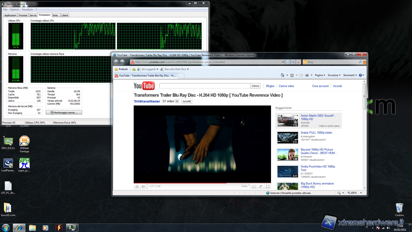 Essendo questa piattaforma destinata generalmente ad un utilizzo HTPC, abbiamo deciso di effettuare vari test per vedere l’utilizzo della cpu durante l’esecuzione di vari filmati Full-HD a 1080p e 720p a pieno schermo, monitorando l’utilizzo della cpu attraverso il task-manager, raggiungibile da “Gestione attività”.