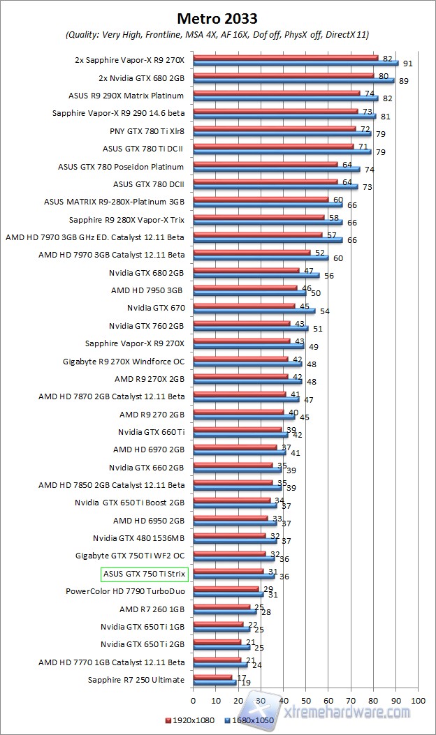ASUS GTX 750 Ti OC Strix, silenziosità massima - Metro 2033